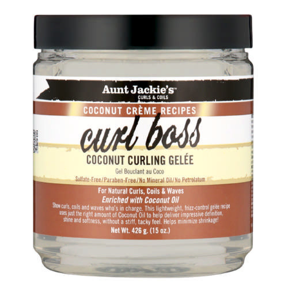 Aunt Jackie’s Coconut Crème Recipes Curl Boss 426g minimises shrinkage, and gives your curls definition, shine and softness without feeling tacky. Made without sulfates, parabens, mineral oil, and petrolatum.