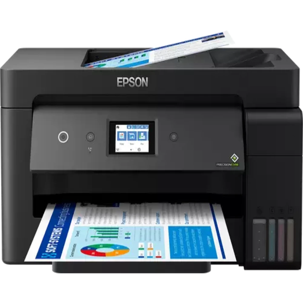 Epson EcoTank L14150. Print technology: Inkjet, Printing: Colour printing, Maximum resolution: 4800 x 1200 DPI, Print speed (colour, normal quality, A4/US Letter): 24 ppm. Copying: Colour copying, Maximum copy resolution: 600 x 1200 DPI. Scanning: Colour scanning, Optical scanning resolution: 1200 x 2400 DPI. Faxing: Colour faxing. Duplex functions: Print. Maximum ISO A-series paper size: A3+. Wi-Fi. Direct printing. Product colour: Black