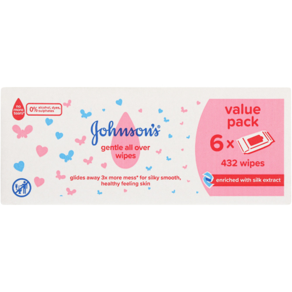 Johnson’s Gentle All Over Baby Wipes 432 Wipes are designed to gently yet effectively clean tiny faces, feet, and everything in between. Enriched with silk extract, these baby wipes cleanse without leaving behind any unwanted residue.