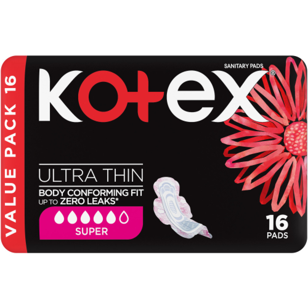 Kotex Designer Ultra Thin Pads Duo Pack Super 16 conforms to your body for ultimate leak protection and maximum comfort.
