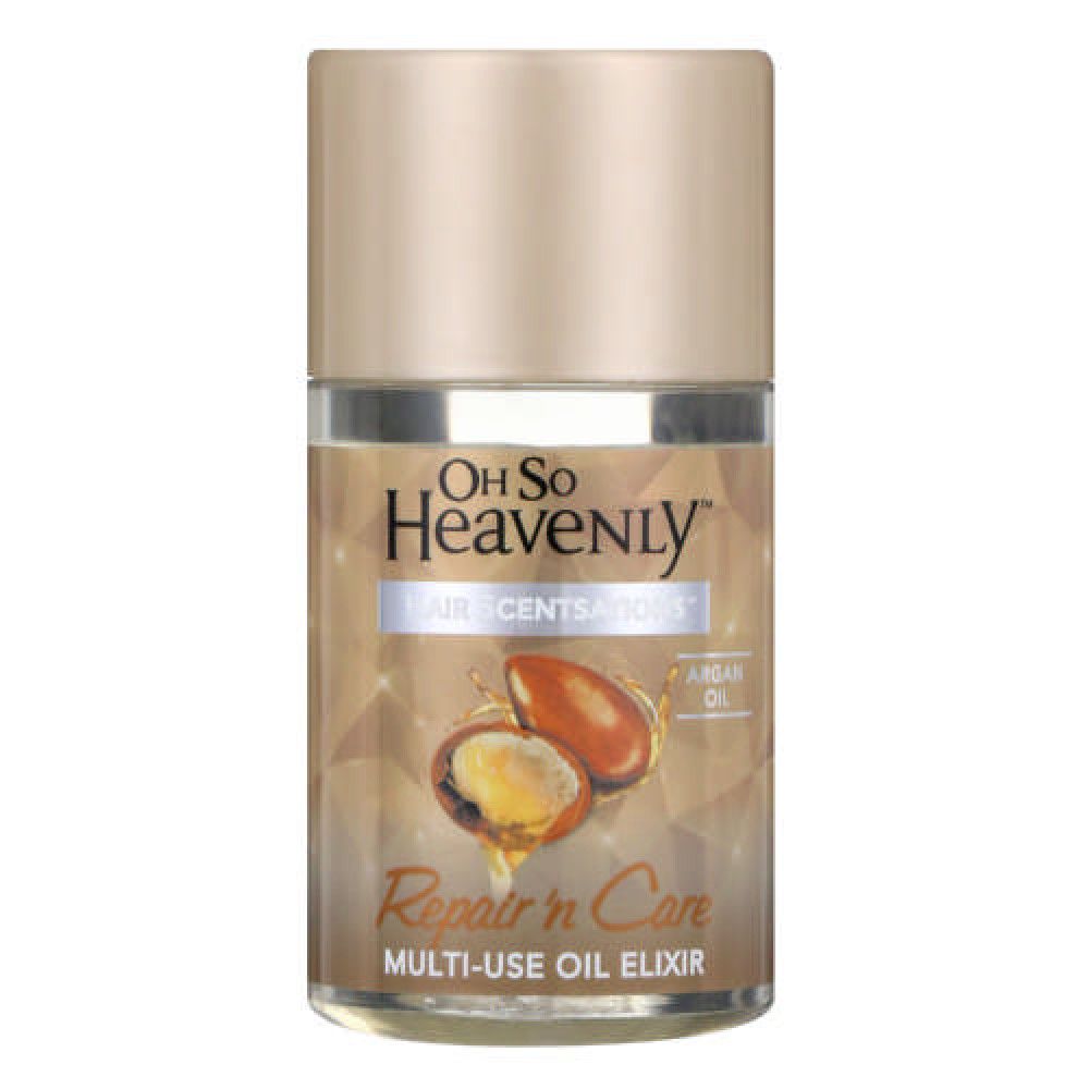 Oh So Heavenly Hair Scentsations Multi-Use Oil Elixir 50ml is a powerful oil blend of argan, Inca and Abyssinian oils for beautifully soft and silky hair. This non-greasy but rich oil elixir helps to intensively nourish, add shine, improve colour vibrancy and protect hair against split ends and damage. UV filters help to protect hair and colour against external aggressions.
